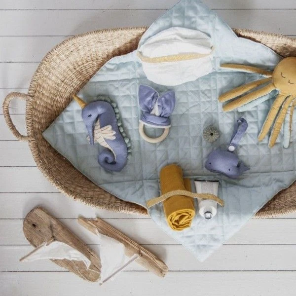 La mer est pleine de créatures magiques. Cette année, nous accueillons notre poulpe bien-aimée. Ce doudou hochet, dans sa belle palette de couleurs de graminées et d’épinette bleue, est plus doux que jamais. Les bruits de sonnette apaisants divertissent les tout-petits, tout en leur donnant leur nouvel ami préféré, câlin de la mer.