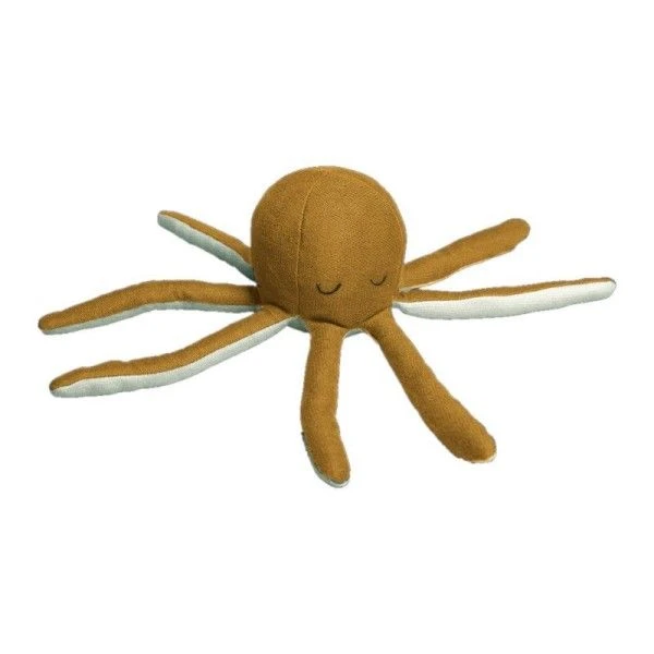 Pour les petits bébés écolo, Eveil, douceur et activités en compagnie de cet amusant, Doudou Hochet Fabelab® Poulpe Endormi Ocre 22 cm Coton Bio GOTS Fabelab® de couleur Ocre. Un amusant doudou aux couleurs des Océans avec un hochet et de longue tentacules pour mieux le tenir. Un Doudou hochet Bio, amusant, timide et de bonne humeur, … et prêt à amuser bébé tout au long de la journée. Un doudou en tissu de coton bio, avec 8 belles tentacules à mâchouiller. Un doudou hochet pour les bébés bio, dès le premier age, avec une jolie bouille sympathique, simple, douce et tendre dont les traits d’expression assez neutre, lui confère cette identité unique.