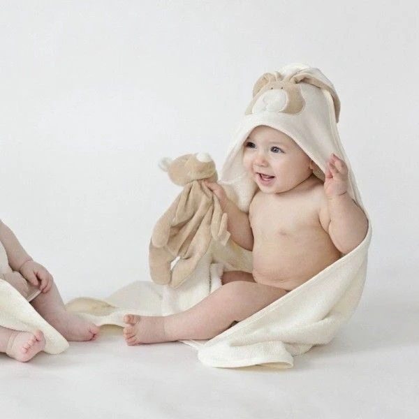 Pour les bébés bio et écolos dès la naissance, éveil, confort & réconfort en compagnie de cet adorable Doudou Lapin Bio Attache tétine Wooly Organic® Coton Bio 26 cm certifié GOTS, de couleurs Beige & Blanche pour le museau et les oreilles. Un adorable doudou Lapin, doux, sain et tendre pour accompagner et réconforter bébé dans ses premiers moments d’inquiétude et ses bonheurs. Facile à saisir grace à sa faible épaisseur, son large corps et ses pattes et ses très grandes oreilles, faciles à mâchouiller pour apaiser les douleurs dentaires,…) notre petit Lapin Bunny, tendre et écolo sera de toutes les aventures et de tous les câlins. Un agréable compagnon pour bien débuter dans la vie, bien accompagné et protégé. Un doudou plat Wooly Organic® issu d’une conception éco-responsable, et fabriqué à partir de coton bio certifié GOTS (organic c’est à dire, issu de l’agriculture biologique) et rempli de fibre de maïs, permettant d’acquérir le label Oeko-Tex. Les doudous Wooly Organic® sont certifiés GOTS, certifiant que tous le processus (de la culture du coton, la production de laine, les tricotages, colorations, confections du tissu,….) sont bien biologique (100%). Avec ce doudou Ourson, bébé devient défenseur de la nature, de notre environnement, et du travail des hommes….et n’a peur de rien.