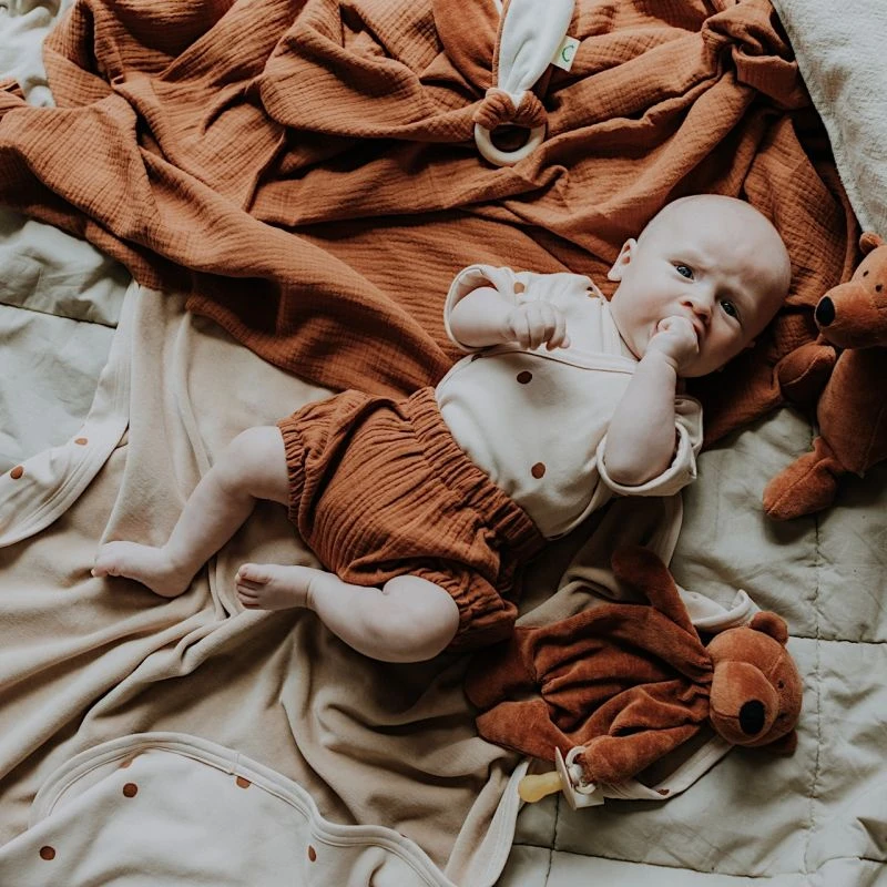 Les Doudous Plat Attache sucette Ours Caramel Wooly Organic® Coton Bio 25 cm sont réalisés avec soin. Comme toutes les Peluches & Doudous Wooly Organic®, ils sont fabriqués à partir de Coton Bio Organic issu de l‘Agriculture biologique. Le remplissage des doudous est réalisé fibre de Maïs. Le Doudou est fait main à partir de matériaux entièrement naturels et Bio et le tout en Europe entre la Lettonie et l’Allemagne.