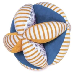 Balle Sensorielle Avec Hochet Bleu-Rayé 15cm Coton Bio Doudou Et Compagnie® – Doudou Bio Français