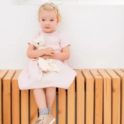 Doudou Plat Bébé Hoppa® Chat Mila Mousseline Rose Cerise 24cm Coton Bio GOTS – Doudou Bébé