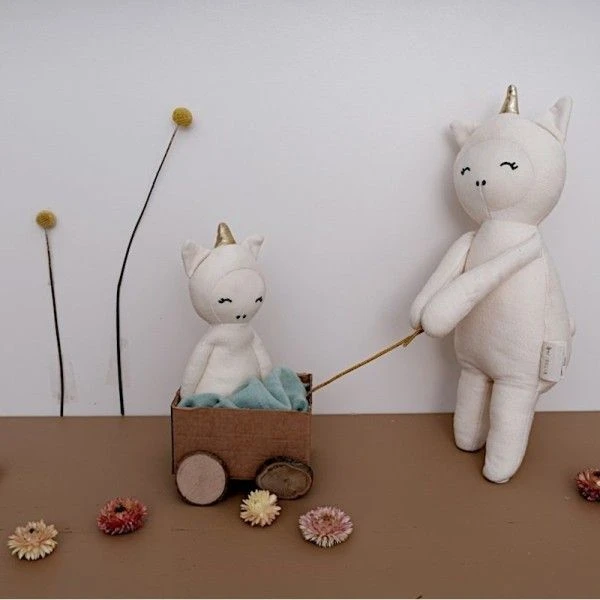 Les Hochets Fabelab® Licorne Merveilleuse 17 cm Blanche Coton Bio GOTS se composent et sont: