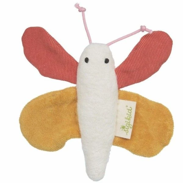 Les Hochets Tissu Sigikid® Papillon Green 12 cm de la gamme ‘Green’ sont réalisées avec soin. Comme toutes les Peluches & Doudou Sigikid® de la gamme Green, ils sont fabriqués à partir de Coton Bio Organic issu de l‘Agriculture biologique. Le remplissage des doudous est réalisé en Laine, graine d’épeautre ou noyau de cerise (doudous bouillottes). Fabriqué en Europe, chaque Doudou Sigikid® de la gamme Green est ‘fait main’ à partir de matériaux entièrement naturels et Bio, et suivant des processus de production, économes en énergie , permettant de limiter les émissions de CO².