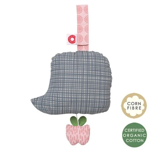 Pour les bébés dés la naissance, éveil, amour, douceur et réconfort auprés de ce Jouet Boite à Musique Chouette Elise Rose et Grise Franck & Fischer en Coton Bio GOTS. Une boite à musique en coton bio, donc la douce mélodie de Lullaby (Schuberts) emportera bébé tendrement dans les bras de Morphée. Un joli jouet boite à musique à accrocher aux barreaux d’un lit, au bras d’un trapèze d’éveil ou simple à promener comme doudou, aux quatres coins de la maison. Une taille parfaite pour les petits mains, des couleurs vives et un look très typé, fera de ce ‘chouette Hibou’ un compagnon de tous les jours. Fabriqué à partir d’un coton bio issu de l’agriculture biologique (certifié GOTS), et rembourré de fibre 100% polyester, ce jouet est celui des petits écolos câlins….