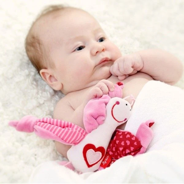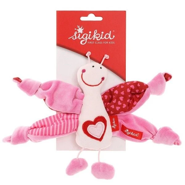 Douceur, câlins et jeux – Le papillon sigikid Play Q, est tendre et doux… avec ses cloches (grelots) il apporte en un instant un sourire sur le visage de tout les bébés. Bébé pourra facilement le tenir avec les petites mains et explorer les textures, des ailes, Les cloches et les feuilles bruissantes…